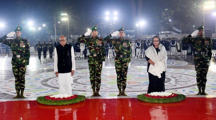 অমর একুশে ও আন্তর্জাতিক মাতৃভাষা দিবসের প্রথম প্রহরে কেন্দ্রীয় শহীদ মিনারে পুষ্পস্তবক অর্পণ করে ভাষা শহীদদের প্রতি শ্রদ্ধা জানিয়েছেন রাষ্ট্রপতি মো. আবদুল হামিদ ও প্রধানমন্ত্রী শেখ হাসিনা। সোমবার (২০ ফেব্রুয়ারি)