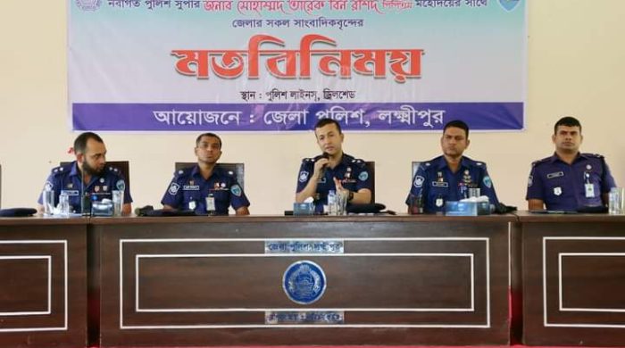 মাহমুদ ফারুক: লক্ষ্মীপুরে জেলায় কর্মরত সাংবাদিকদের সাথে মত বিনিময় করেছেন নবাগত পুলিশ সুপার জনাব মোহাম্মদ তারেক বিন রশিদ (পিপিএম)। মঙ্গলবার দুপুরে পুলিশ লাইন্স ড্রিলশেডে এ সভা অনুষ্ঠিত হয়। সভায় জেলার