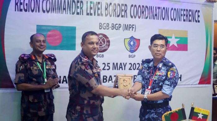 নিজস্ব প্রতিবেদক: বর্ডার গার্ড বাংলাদেশ (বিজিবি) এবং মায়ানমার সীমান্তরক্ষী বাহিনী বর্ডার গার্ড পুলিশ (বিজিপি)-এর মধ্যে রিজিয়ন কমান্ডার পর্যায়ের ০২ দিনব্যাপী (২৪-২৫ মে ২০২৩) সীমান্ত সম্মেলন আজ কক্সবাজারের টেকনাফে শেষ হয়েছে। read more
