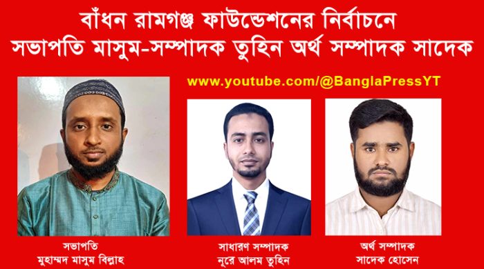 নিজস্ব প্রতিবেদক: বাঁধন রামগঞ্জ ফাউন্ডেশনের দ্বি-বার্ষিক নির্বাচন আজ শুক্রবার বিকালে অনুষ্ঠিত হয়েছে। রামগঞ্জ জিয়াউল হক হাই স্কুল এন্ড কলেজ মিলনায়তনে এ নির্বাচন অনুষ্ঠিত হয়। ২০২৪-২৫ইং সেশনের জন্য বাঁধন রামগঞ্জ ফাউন্ডেশনের